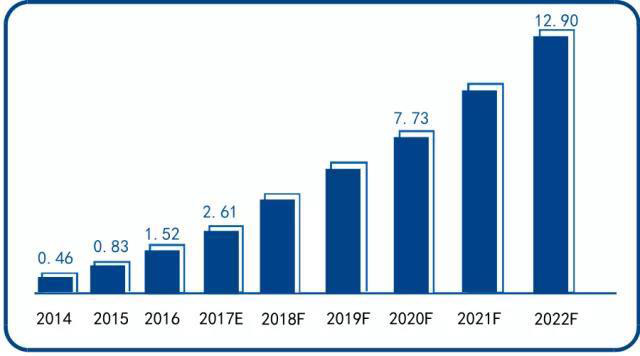 2014-2022年中國碳納米管導(dǎo)電漿料產(chǎn)值分析及預(yù)測(cè)(億元)