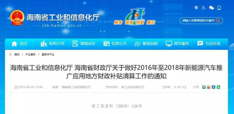 海南省工業(yè)和信息化廳和海南省財政廳5月29日發(fā)布了《關(guān)于做好2016年至2018年新能源汽車推廣應(yīng)用地方財政補(bǔ)貼清算工作的通知》。