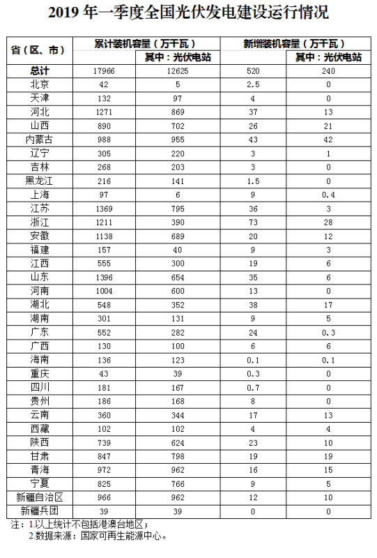 全國(guó)各?。▍^(qū)、市)2019年一季度光伏發(fā)電建設(shè)運(yùn)行情況詳見(jiàn)附表。