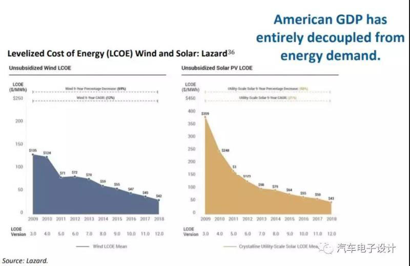 這個問題的核心還是,通用電氣對世界能源格局變化視而不見,最重要的一條是,美國由于產(chǎn)業(yè)轉(zhuǎn)移的問題,GDP的增長和能源增長開始脫鉤了,工業(yè)大部分都轉(zhuǎn)出去了,GDP的增長和電力方面的增長沒有相關(guān)性了。特別是中國在風(fēng)電、太陽能的持續(xù)投資,使得這兩塊的發(fā)電成本持續(xù)性的下降。