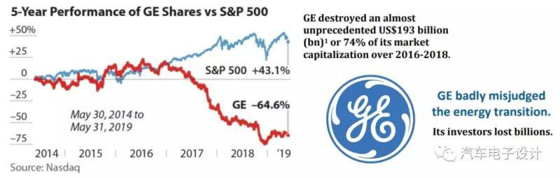 IEEFA美國能源經(jīng)濟(jì)和金融分析研究所發(fā)布了一份報告,《General Electric Misread the Energy Transition: A Cautionary Tale》里面闡述了美國通用電氣公司嚴(yán)重誤讀了能源變化的趨勢,特別是全球各國在2015年在《巴黎協(xié)定》之后電力能源結(jié)構(gòu)的轉(zhuǎn)化,在戰(zhàn)略方向上和業(yè)務(wù)上的判斷的錯誤,使得通用電氣的股東付出了巨大的代價。通用電氣的市值在短短三年內(nèi)就損失了1930億美元,占其市值的74% 。