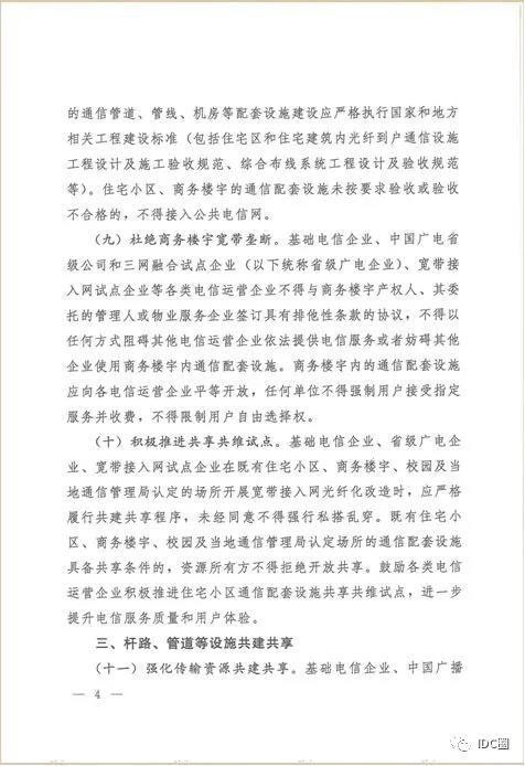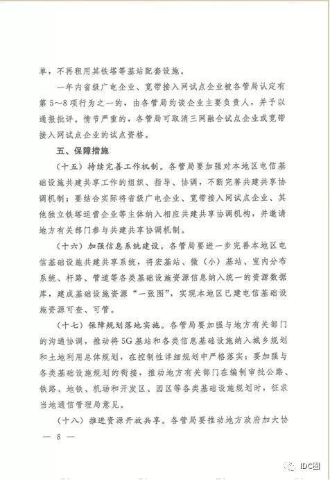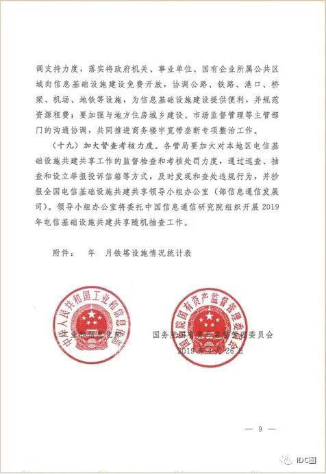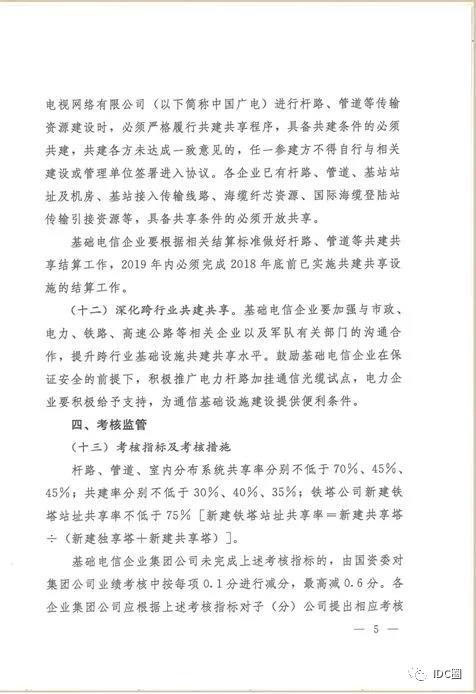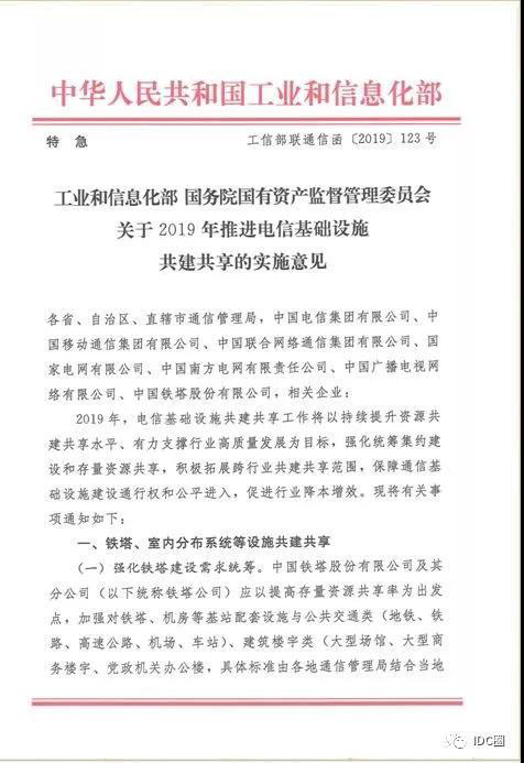 近日,工信部和國資委聯(lián)合發(fā)布了《關(guān)于2019年推進電信基礎(chǔ)設施共建共享的實施意見》。文件指出,2019年,電信基礎(chǔ)設施共建共享工作將以持續(xù)提升資源共建共享水平、有力支撐行業(yè)高質(zhì)量發(fā)展為目標,強化統(tǒng)籌集約建設和存量資源共享,私極拓展跨行業(yè)共建共享范圍,保障通信基礎(chǔ)設施建設通行權(quán)和公平進入,促進行業(yè)降本增效。