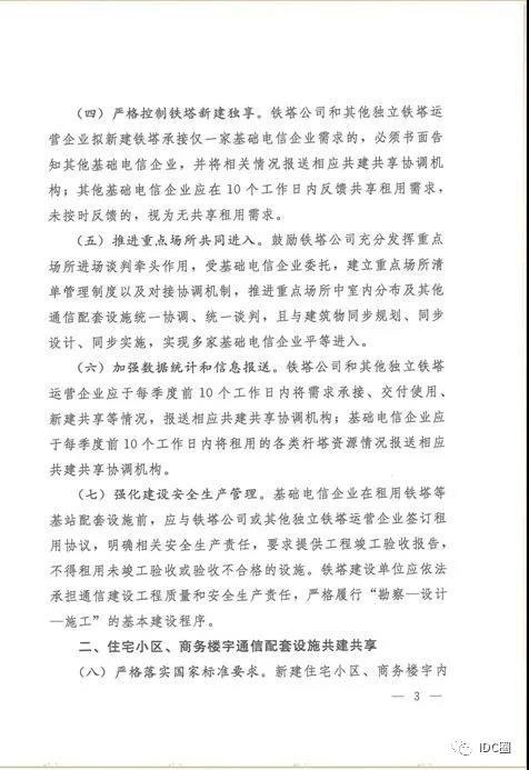 在鐵塔、室內(nèi)分布系統(tǒng)等設施共建共享中提到: (三) 加強資源雙向開放共享。基礎(chǔ)電信企業(yè)與鐵塔公司要利用路燈、監(jiān)控、交通指示等社會桿塔資源,充分發(fā)揮自身優(yōu)勢,按照市場化原則開展微(?。┗窘ㄔO;鼓勵各企業(yè)積極與市政、公安、交通等部門溝通協(xié)商,爭取其向通信基礎(chǔ)設施建設開放所管轄的社會桿塔資源。鼓勵基礎(chǔ)電信企業(yè)和鐵塔公司拓展與電力、鐵路等行業(yè)的合作領(lǐng)域,推進資源雙向開放共享,有效降低建網(wǎng)成本和設施租賃成本。