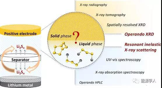 鋰-硫電池在電化學(xué)儲能應(yīng)用中的高能量密度是基于硫的高理論比電荷。但到目前為止,鋰-硫電池的商業(yè)化仍然受到阻礙,因?yàn)榉磻?yīng)機(jī)理的復(fù)雜性涉及一系列動(dòng)態(tài)變化的液固平衡。Operando技術(shù)被廣泛應(yīng)用于研究這些性能限制的相變;然而,它們往往在同時(shí)跟蹤和解決固、液相問題上存在不足。本文,Mulhouse材料科學(xué)研究所J. Conder和C. Villevieille對該領(lǐng)域的研究成果進(jìn)行了總結(jié),并簡要概述了用于鋰-硫電池的不同Operando技術(shù)的最新進(jìn)展(圖1),從而解決了單一技術(shù)是否可用于準(zhǔn)確研究固體和液體平衡的問題。