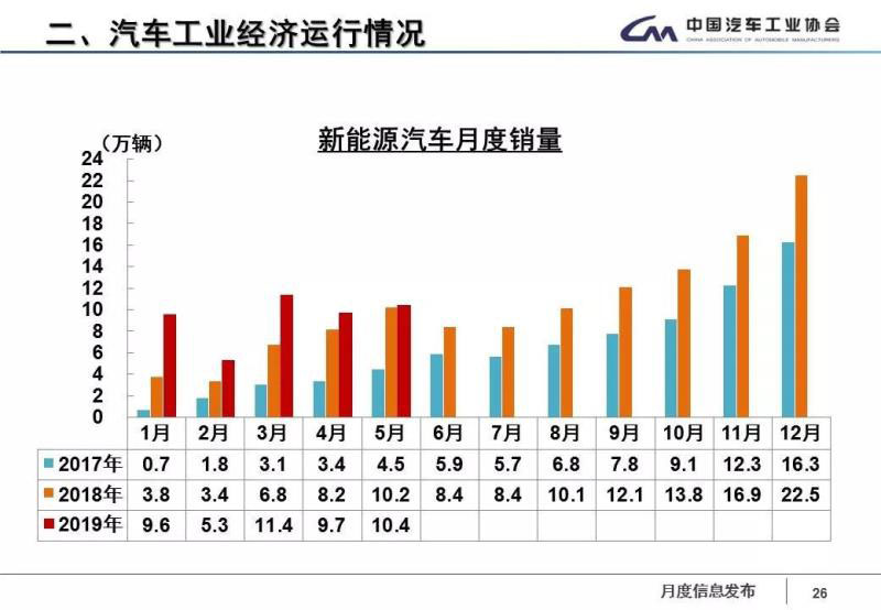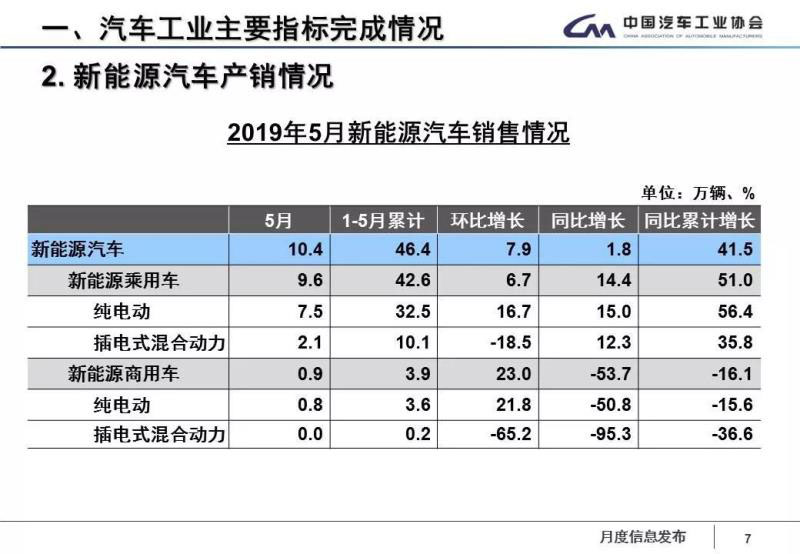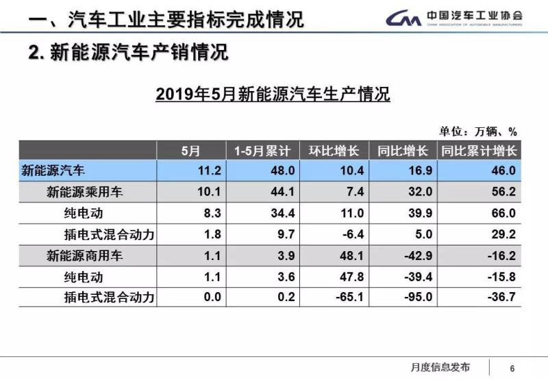 和往常一樣,新能源汽車的增長(zhǎng)情況依舊是一枝獨(dú)秀,但5月份新能源汽車的增長(zhǎng)速度已經(jīng)出現(xiàn)放緩態(tài)勢(shì)。在信息發(fā)布會(huì)上,記者了解到,下半年,隨著符合國(guó)六標(biāo)準(zhǔn)的車型不斷增加,以及減稅降費(fèi)等一系列政策措施效果的持續(xù)顯現(xiàn),特別是6月初國(guó)家發(fā)展改革委、生態(tài)環(huán)境部、商務(wù)部聯(lián)合公布《關(guān)于印發(fā)<推動(dòng)重點(diǎn)消費(fèi)品更新升級(jí) 暢通資源循環(huán)利用實(shí)施方案(2019-2020年)>的通知》,為乘用車市場(chǎng)帶來相對(duì)積極的作用,新能源汽車產(chǎn)銷有望繼續(xù)保持較快增長(zhǎng)。
