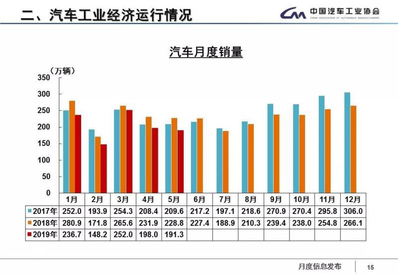 6月12日,中國(guó)汽車工業(yè)協(xié)會(huì)召開發(fā)布會(huì),數(shù)據(jù)顯示,5月汽車產(chǎn)銷同比降幅呈擴(kuò)大態(tài)勢(shì)。具體表現(xiàn)如下:5月產(chǎn)銷量分別為184.8萬輛和191.3萬輛,比上月分別下降9.9%和3.4%,比上年同期分別下降21.2%和16.4%,同比降幅比上月分別擴(kuò)大6.7和1.8個(gè)百分點(diǎn)。1-5月,汽車產(chǎn)銷分別為1023.7萬輛和1026.6萬輛,產(chǎn)銷量比上年同期均下降13%,降幅比1-4月分別擴(kuò)大2和0.8個(gè)百分點(diǎn)。