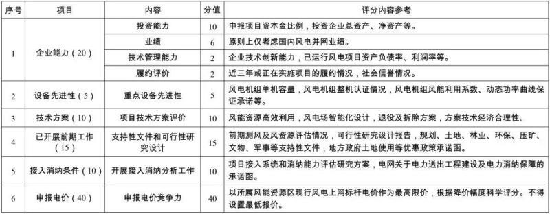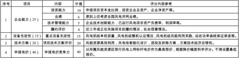 風(fēng)電項(xiàng)目的競(jìng)爭(zhēng)配置參考評(píng)分標(biāo)準(zhǔn)表