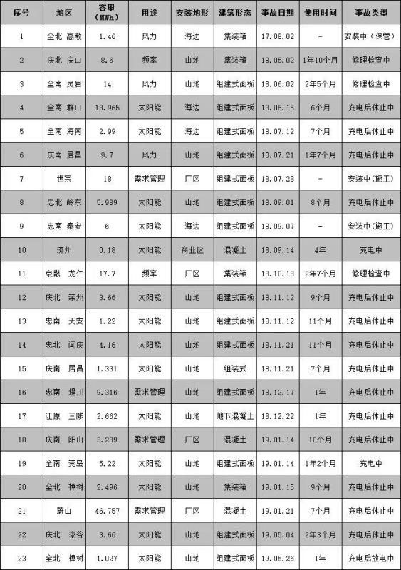 17年8月全北高敞的風(fēng)電并網(wǎng)儲(chǔ)能電站火災(zāi)之后,至今共有23起火災(zāi)集中發(fā)生。