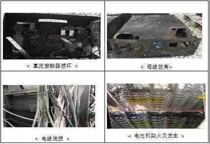 母線損壞后,導(dǎo)致電池機(jī)架保護(hù)裝置附件的二次短路事故發(fā)生,多處同時(shí)出現(xiàn)火災(zāi)。