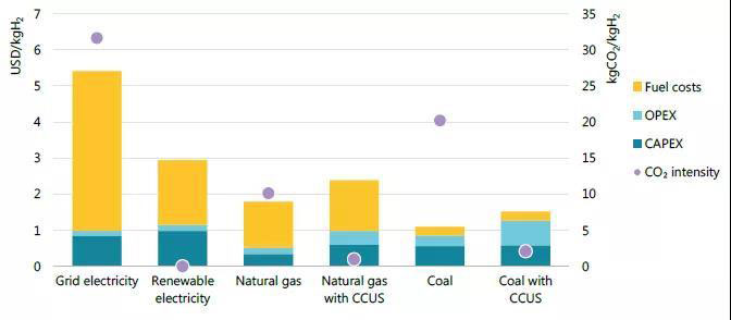 目前中國(guó)氫氣生產(chǎn)成本情況,詳見下圖: