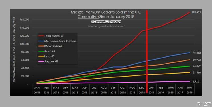 同時,特斯拉的產(chǎn)品定位一直是打通整個橫向市場,從海外市場的現(xiàn)狀來看,無論是參考之前的Model S與Model X,還是目前Model 3在歐美兩地的市場競爭關(guān)系,與同級別燃油車的競爭是其不可忽視的一點(diǎn),例如Model 3直接面對的則是寶馬3系、奔馳C級以及奧迪A4L等車型,而這些車型的目標(biāo)用戶群體,也同樣會將Model 3放入到對比陣容中。