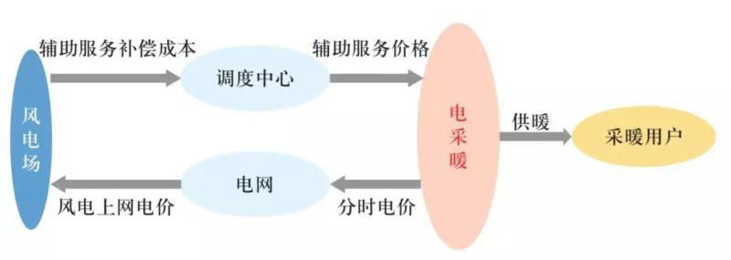 ? 圖1 電采暖參與輔助服務(wù)市場結(jié)算關(guān)系圖