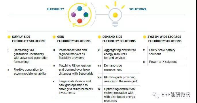 此案例表明,具有實際影響的實際解決方案來自創(chuàng)新的組合。正確的組合和最佳解決方案對于每個國家可能不同,但許多國家都有共同點。將這4個維度的創(chuàng)新相結合所產生的解決方案降低了電力系統(tǒng)成本。國際可再生能源署已詳細闡述了11種解決方案,以提高電力系統(tǒng)的靈活性,以說明如何結合創(chuàng)新,從而在針對間歇性可再生能源集成的定制方法中產生效果。