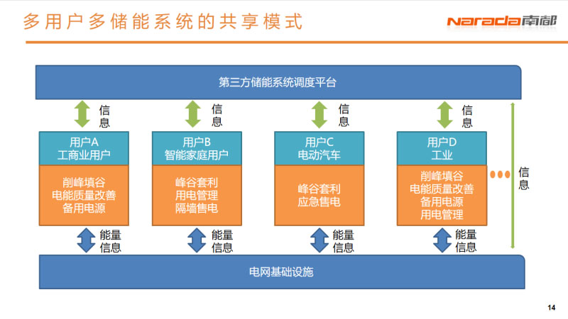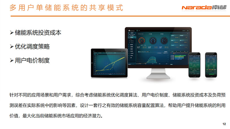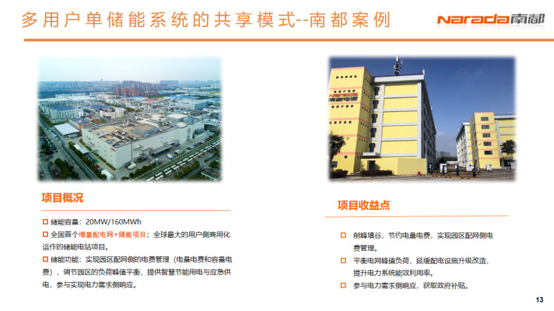 同時也要綜合考慮整個儲能系統(tǒng)的配置,目前南都做了很多的儲能系統(tǒng)方案,我們會發(fā)現你要考慮它的綜合投資成本,要考慮它的調度策略,要考慮它的負荷預測,我們基于的是用戶的歷史數據,并不是說你用電量大你就一定能做儲能,這個我們也是排除了很多可能性的風險因素,包括你的占地面積,各種因素考慮之后,我們才會決定我們一方要不要上儲能設備,這個不是簡單的說只要你用電量大,只要你想做,只要你有額外的充電量,你就可以上儲能,這個還有很多的前提條件。我們目前在無錫星州工業(yè)園就做了一個多用戶單儲能系統(tǒng),每天能放16萬的電。什么概念呢,它這個工業(yè)園區(qū)每個月的用電量在6000萬到7000萬度,我們每天保證儲能能夠放16萬度電。工業(yè)園區(qū)里面有好多家企業(yè),每家企業(yè)的用電肯定是存在差異性的,這個對園區(qū)來說,肯定是有效益的,而且我們幫助用戶,如果用戶他有檢修的一些需求,他有需求側響應的需求,我們儲能都能幫他實現,所以儲能在這里面體現的是綜合價值。