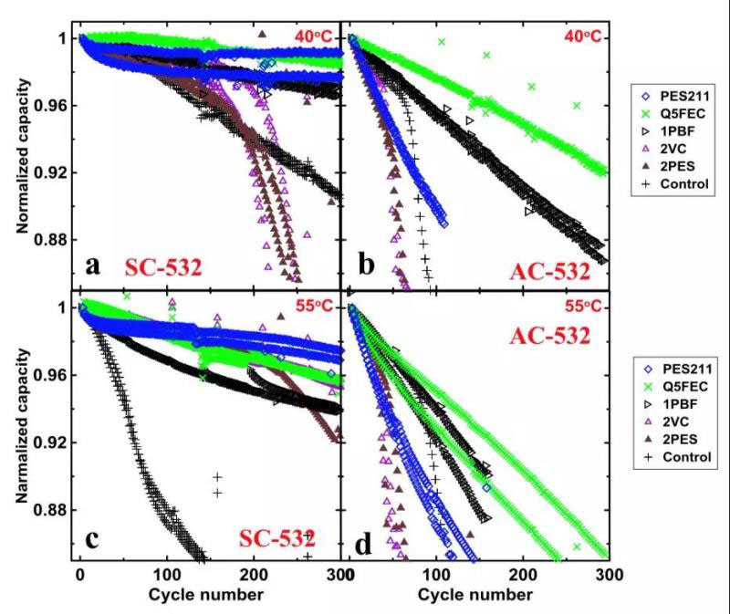 單晶材料良好的結(jié)構(gòu)穩(wěn)定性使得材料具有非常好的循環(huán)穩(wěn)定性,以單晶NCM523為例,在40℃下循環(huán)300次(3-4.4V,C/2)后,單晶NCM523材料電池的容量保持率仍然可達(dá)98%,但是即便是通過(guò)Al2O3包覆處理的二次顆粒NCM523材料的容量保持率也僅有92%[5],在55℃高溫條件下,這一差距將更加明顯(單晶>94%,二次顆粒<85%)。