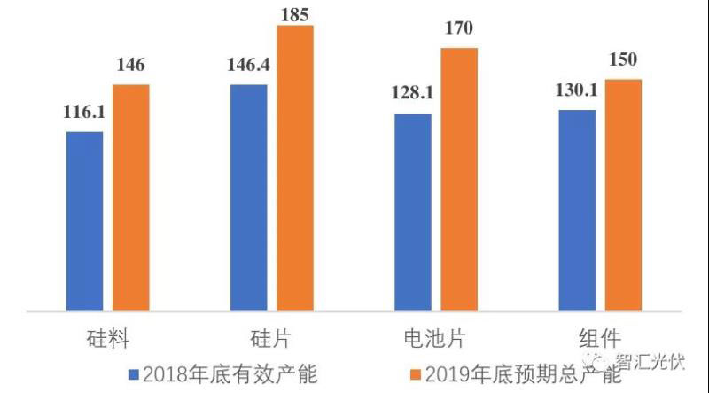 2019年底,預(yù)期全國(guó)單、多晶硅片的總產(chǎn)能約為185GW。