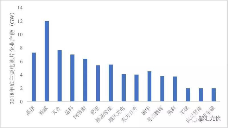 圖:2018年國(guó)內(nèi)主要電池片生產(chǎn)企業(yè)的產(chǎn)能情況(單位:GW)