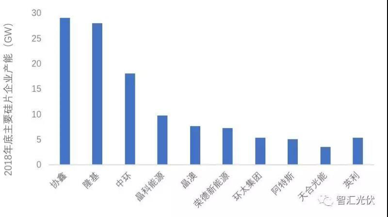 圖:2018年國(guó)內(nèi)主要硅片生產(chǎn)企業(yè)的產(chǎn)能情況(單位:GW)