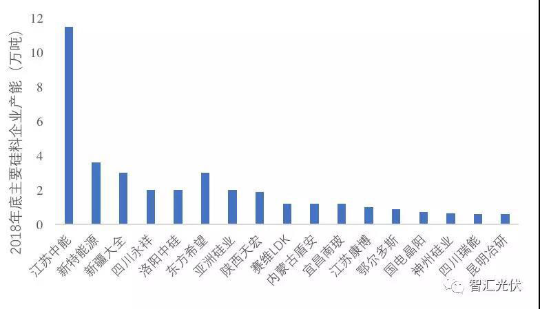 圖:2018年國(guó)內(nèi)主要多晶硅生產(chǎn)企業(yè)的產(chǎn)能情況(單位:萬(wàn)噸)
