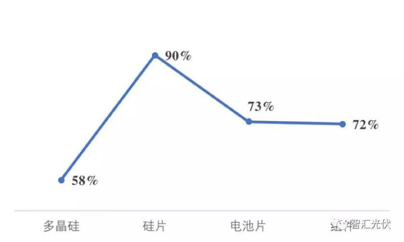 圖:2018年光伏產(chǎn)業(yè)各環(huán)節(jié)中國(guó)產(chǎn)量占比