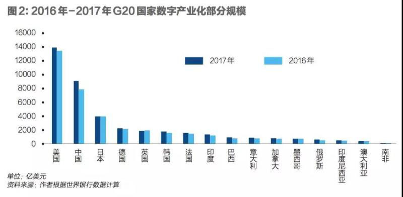 各國數(shù)字經(jīng)濟(jì)規(guī)模比較
