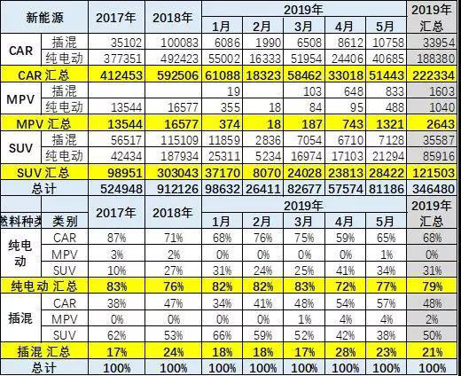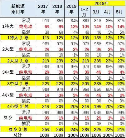 2019年新能源車增長總體很強,其中乘用車增長突出,新能源乘用車19年1-5月35萬臺,同比增長65%,增長表現(xiàn)突出,這也是政策推動新能源車轉(zhuǎn)型乘用車高質(zhì)量增長的效果充分體現(xiàn)。19年1-5月代表技術(shù)趨勢的乘用車的表現(xiàn)突出,歷年1-5月乘用車占比僅有全年的20%,19年占比18年全年銷量預(yù)計達到38%左右,目前看19年改善較大,未來更有潛力。