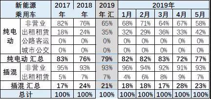 新能源乘用車的出租租賃類占比逐步提升。插混2019年租賃的占比相對2018年同期稍有下降。