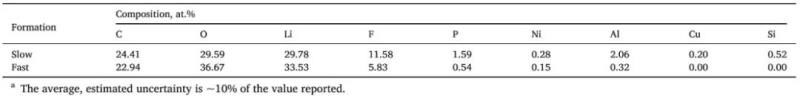 表2. 慢速化成和快速化成電池XPS結(jié)果對比。