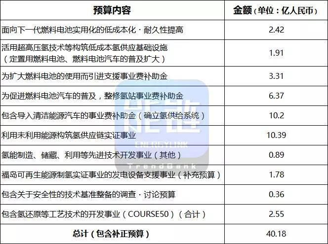 如上表所示,2019年日本在氫能·燃料電池相關(guān)領(lǐng)域的總預(yù)算達(dá)40.18億人民幣。