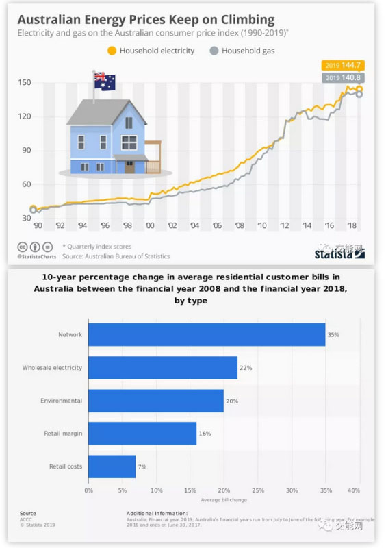 近年來(lái),澳大利亞的能源價(jià)格暴漲,在過(guò)去十年中,澳大利亞電價(jià)漲幅超過(guò)百分之百。