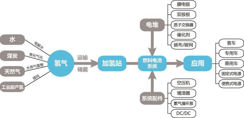 沉寂在高中化學(xué)教科書里被冠以“人類終極能源”的氫能,終于以這樣的形式走入千家萬戶的視野。面對氫能全產(chǎn)業(yè)鏈這個無比龐大的蛋糕,從上游的氫氣制取和儲運、加氫站等基礎(chǔ)設(shè)施、到中游的氫燃料電池、再到最終端的汽車制造,目光所及之處,一片繁華熱鬧。
