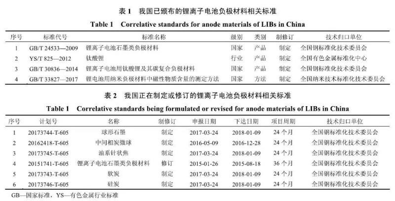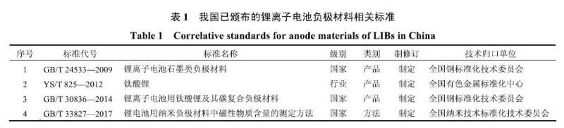 1 國內(nèi)鋰電負極材料相關(guān)標(biāo)準