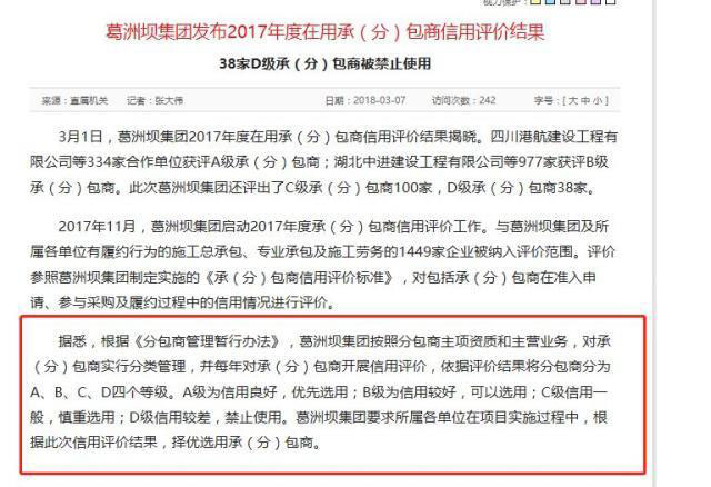 雖然否認(rèn)了違法分包,但葛洲壩在公告中表示,“作為總承包方,葛洲壩電力公司存在項(xiàng)目管理不善問題,主要包括分包履約過程管控不嚴(yán)、分包項(xiàng)目質(zhì)量監(jiān)測(cè)不到位等?!?