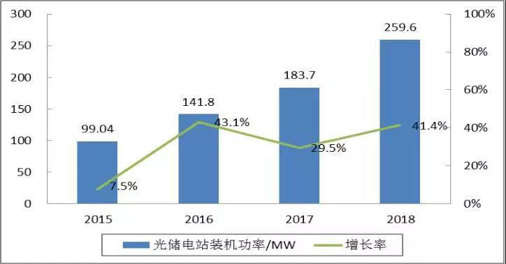 在這些示范項目的促動下,截至2018年底,中國已投運的、與光伏相配套的儲能項目(以下簡稱“光儲項目”)的累計裝機規(guī)模達到了259.6MW,占中國儲能投運項目總規(guī)模的25.7%。2018年的光儲項目規(guī)模相比2017年增長了41.4%,其原因在于黃河水電、魯能集團、協(xié)合新能源等新能源企業(yè)對儲能的理解和認識逐步加深,同時對儲能為光伏電站帶來的價值進一步認同,進而在集中式光伏電站中部署儲能項目的力度增大。