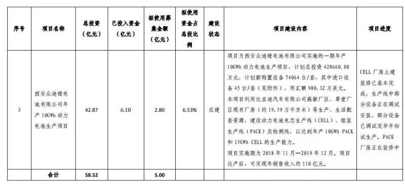 其中,50%的募集資金擬用于包頭比亞迪礦用車有限公司能量型動(dòng)力電池生產(chǎn)項(xiàng)目,太原比亞迪汽車有限公司年產(chǎn)4.5GWh動(dòng)力電池組裝項(xiàng)目和西安眾迪鋰電池有限公司年產(chǎn)10GWh動(dòng)力電池生產(chǎn)項(xiàng)目,剩余50%的募集資金擬用于補(bǔ)充公司流動(dòng)資金。