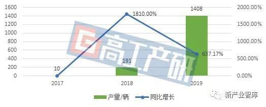 國外各車企燃料電池量產(chǎn)車型推出時間變化不斷,而國內(nèi)的燃料電池汽車產(chǎn)量開始提升。2019年1~6月份中國共生產(chǎn)燃料電池車1408輛,同比增長637.17%。