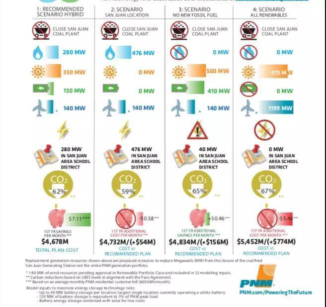 圖:PNM提出關(guān)停San Juan火電廠的四種替代方案