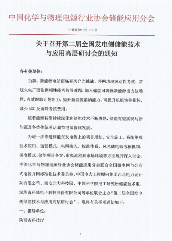 為進(jìn)一步推進(jìn)儲能在發(fā)電側(cè)上的項(xiàng)目規(guī)劃、安全施工、系統(tǒng)集成技術(shù)應(yīng)用、運(yùn)營模式、電網(wǎng)接入、標(biāo)準(zhǔn)體系、風(fēng)光儲電站考核機(jī)制、調(diào)度模式、儲能項(xiàng)目備案、審批流程和市場環(huán)境等方面展開深入討論,中國化學(xué)與物理電源行業(yè)協(xié)會儲能應(yīng)用分會聯(lián)合全國微電網(wǎng)與分布式電源并網(wǎng)標(biāo)準(zhǔn)化技術(shù)委員會、中國電力工程顧問集團(tuán)西北電力設(shè)計院有限公司、西安北大科技園、中國科學(xué)院電工研究所儲能技術(shù)組、深圳市科陸電子科技股份有限公司等單位聯(lián)合主辦“第二屆全國發(fā)電側(cè)儲能技術(shù)與應(yīng)用高層研討會”,現(xiàn)將有關(guān)事項(xiàng)通知如下: