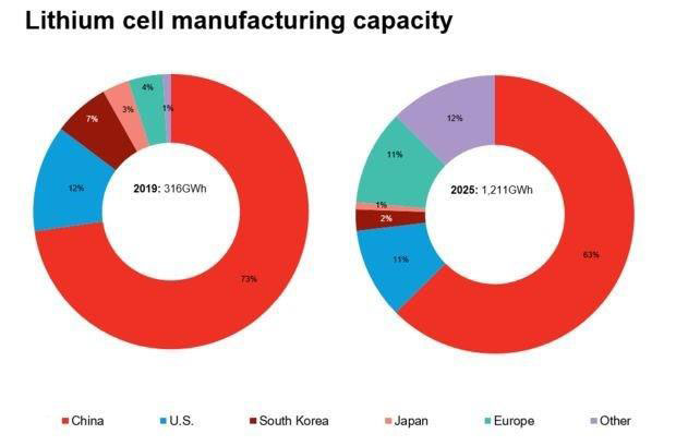 ▲到2025年,歐洲電池制造市場(chǎng)份額將從今年的4%增長到11%