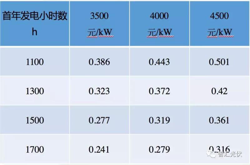 其中,不同電價(jià)區(qū)的目標(biāo)首年發(fā)電小時(shí)數(shù)的反算電價(jià),如下表所示。