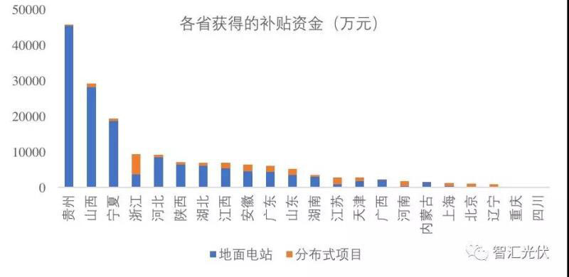 由于貴州、山西、寧夏三省納入補(bǔ)貼的規(guī)模大,補(bǔ)貼強(qiáng)度高,三省項(xiàng)目獲得的補(bǔ)貼額占總補(bǔ)貼額的56%。各省納入補(bǔ)貼項(xiàng)目的補(bǔ)貼需求如下圖所示。