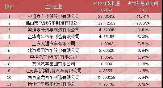2019年上半年,中通客車與佛山飛馳繼續(xù)領(lǐng)銜,兩家公司的裝機(jī)量合計達(dá)到上半年我國燃料電池汽車裝機(jī)總量的65.12%。南通皋開汽車制造有限公司悄然崛起,以微弱優(yōu)勢占得第3席位。金華青年汽車制造有限公司、上汽大通汽車有限公司則分列第4、第5名。