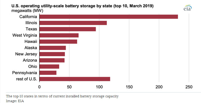 加利福尼亞州、德克薩斯州、夏威夷州部署更多的儲能系統(tǒng)不足為奇,因為德克薩斯州擁有巨大的風(fēng)力裝機容量,而事實上夏威夷州需要新的住宅太陽能系統(tǒng)與電池儲能系統(tǒng)配套部署。然而在這個名單中,令人關(guān)注的是西弗吉尼亞州、賓夕法尼亞州、俄亥俄州。這些地區(qū)的太陽能發(fā)電設(shè)施裝機容量不足650MW。西弗吉尼亞州儲能系統(tǒng)裝機容量只有8.5MW。