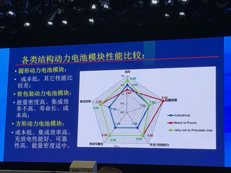 “為什么大家一提到高能量密度就想到軟包裝電池?從車輛工程的角度是看動力電池系統(tǒng)的能量密度,而非單體電池的能量密度。從單體電池到模塊,再到系統(tǒng)集成,中間環(huán)節(jié)比較多,電池之間的連接件、模塊之間的連接電纜、箱體、固定架、支撐架、導熱結(jié)構(gòu)等等,這些都會增加許多重量”,王子冬提出,需要在系統(tǒng)能量密度、可靠性及安全性方面做優(yōu)化。