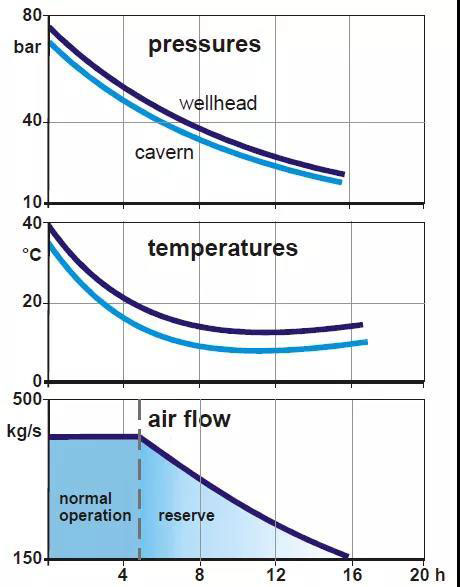 表2為文獻[19]提供的德國漢特福電站的配置參數(shù),儲能電站按照電能輸出與電能儲存階段空氣質(zhì)量流速比為4:1進行設(shè)計,儲能電站可連續(xù)儲能12小時,連續(xù)輸出電能3小時。