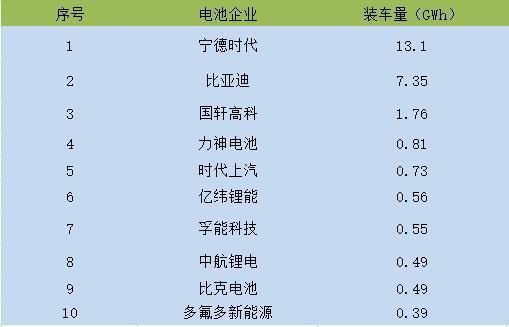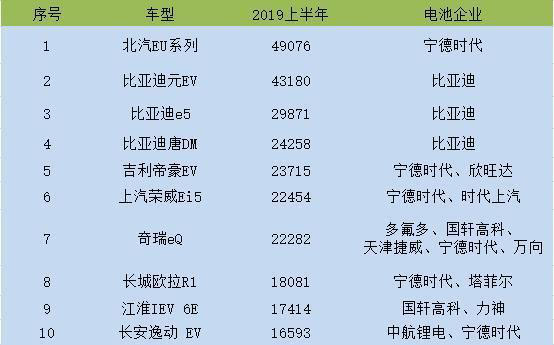 圖 2019年上半年動力電池企業(yè)裝機量TOP 10