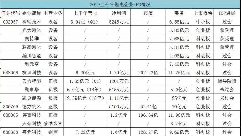據(jù)高工鋰電網(wǎng)不完全統(tǒng)計,僅2019上半年就有14家鋰電企業(yè)沖刺IPO或過會,數(shù)量明顯增多,預計后期會有更多鋰電企走上IPO之路。