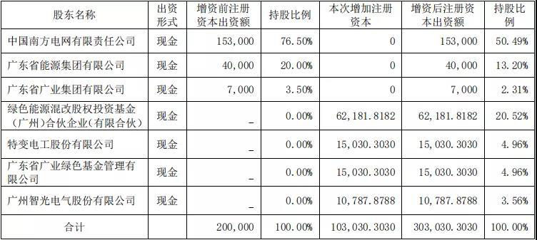 南網(wǎng)能源公司為南方電網(wǎng)國有控股公司,成立于2010年,公司法人及董事長為秦華。本輪增資擴股之后,注冊資本金將由2億元提高到3.03億元。南方電網(wǎng)持股比例也由此前的76.5%,降至50.49%。