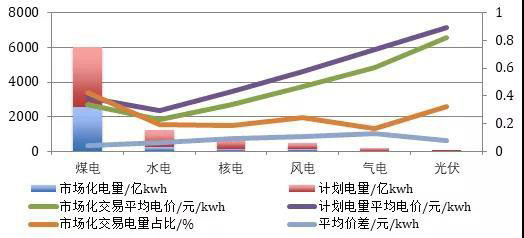 根據(jù)中電聯(lián)統(tǒng)計(jì),2019年一季度,全國電力市場交易電量(含發(fā)電權(quán)交易電量)合計(jì)為4445億度,同比增長33.8%,占全社會用電量比重為26.5%。其中,大型發(fā)電集團(tuán)旗下風(fēng)電資產(chǎn)市場化交易電量比例為24.1%,含補(bǔ)貼市場化交易平均電價為0.4697元/度,比上網(wǎng)電量平均電價低0.0814元/度。由此折算,交易電價比標(biāo)桿電價實(shí)際平均價差0.11元/度。在各類電源中,風(fēng)電屬于參與比例較高、價差幅度較大的品種。
