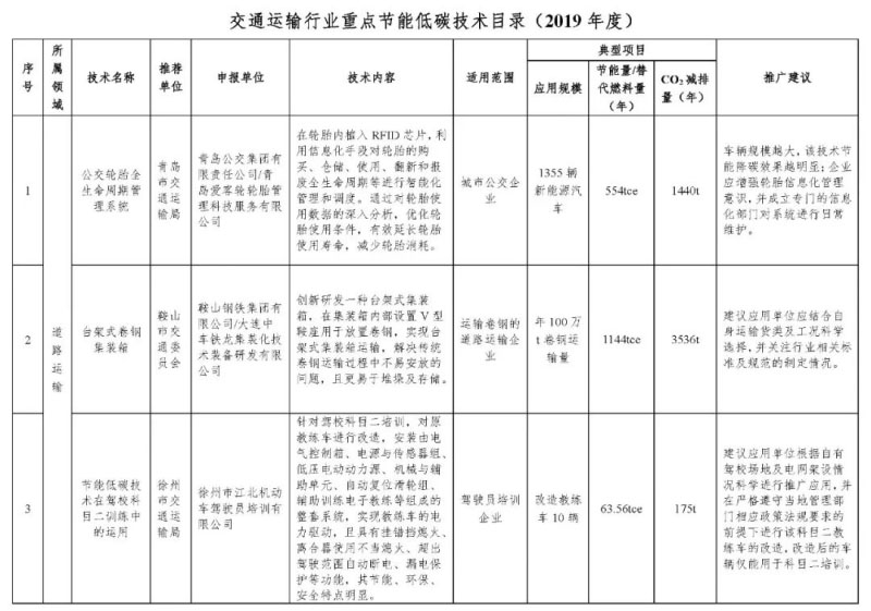 交通運輸部關于發(fā)布交通運輸行業(yè)重點節(jié)能低碳技術推廣目錄(2019年度)的公告